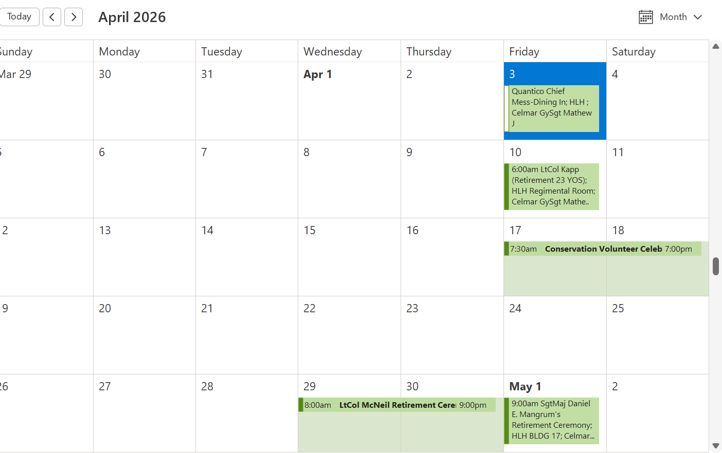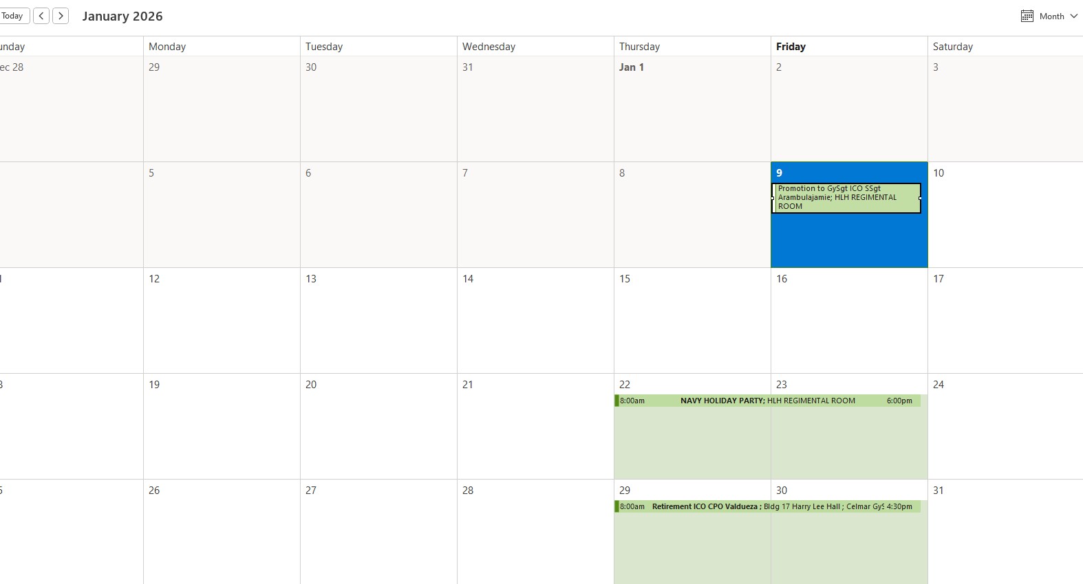 Reservations for events include: promotions, retirement ceremonies and re-enlistments.