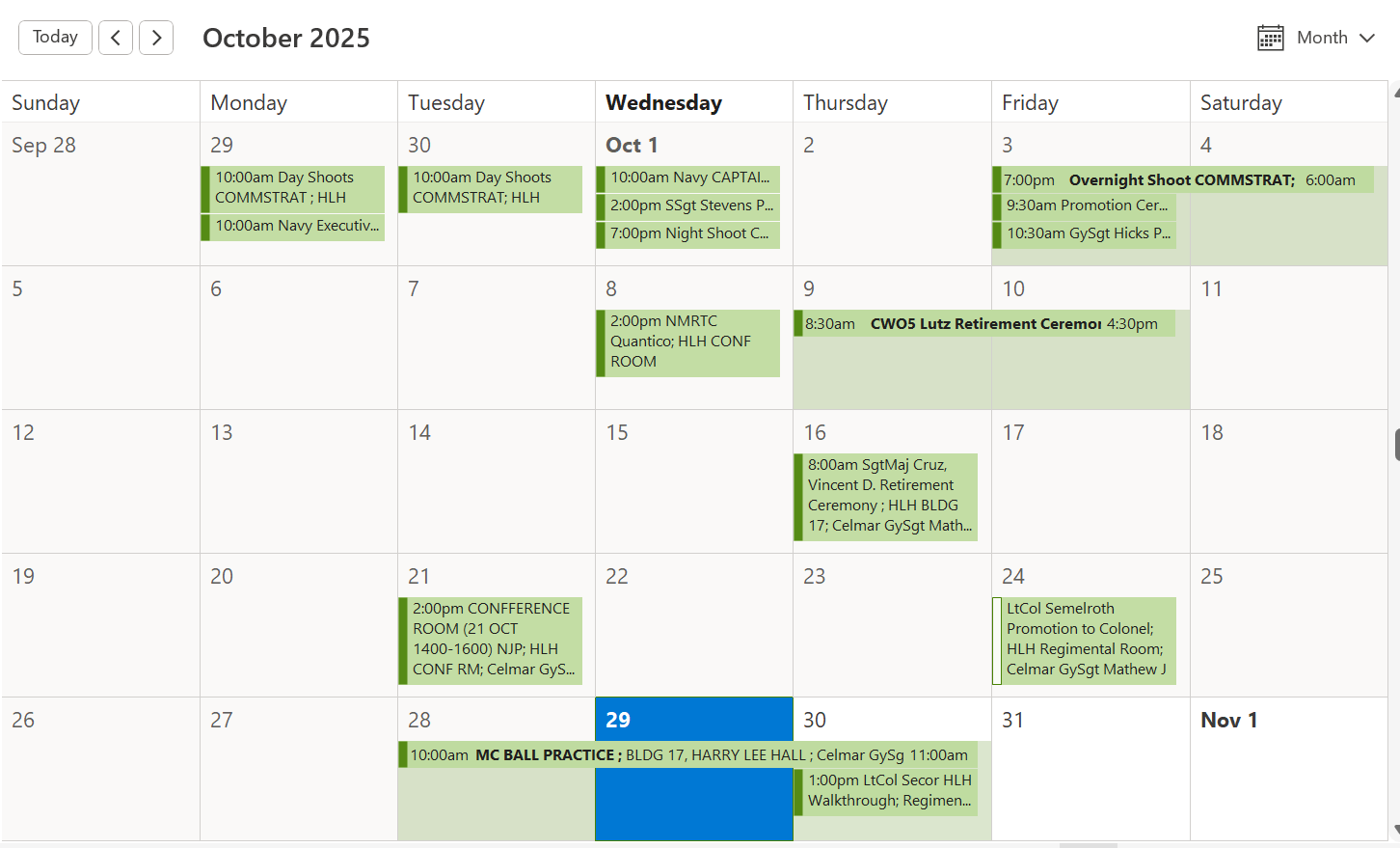 Reservations for events include: promotions, retirement ceremonies and re-enlistments.